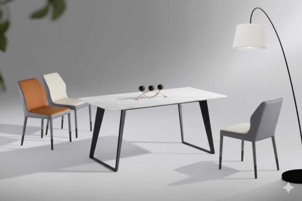 1400x800x750 Matt Dining Table – Rock Plate & Sand Carbon Steel, Black Tripod Legs.