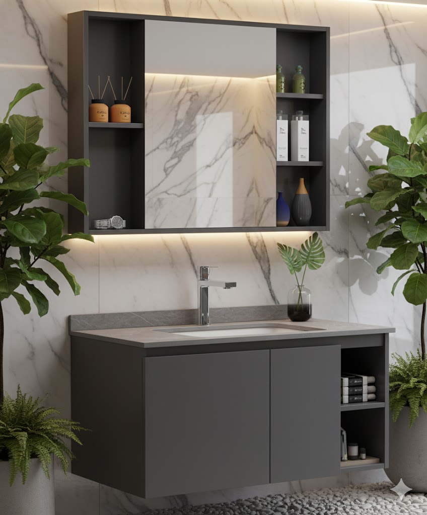 Optimized Storage: Includes a spacious Main Cabinet and a matching, functional Mirror Cabinet.